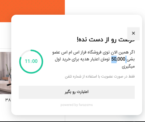 سیستم FOMO: ایجاد ترس از دست دادن فرصت با پاپآپهای زماندار.