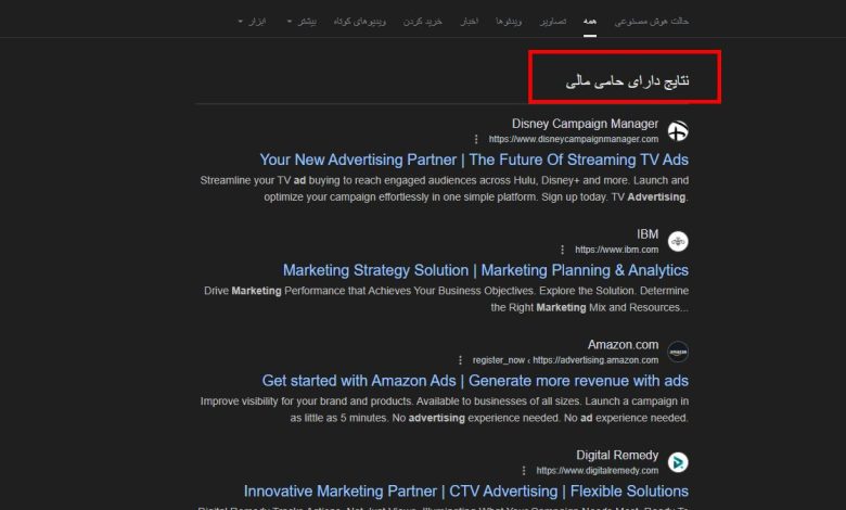 - گوگل ادز (نتایج تبلیغاتی شبیه نتایج ارگانیک)