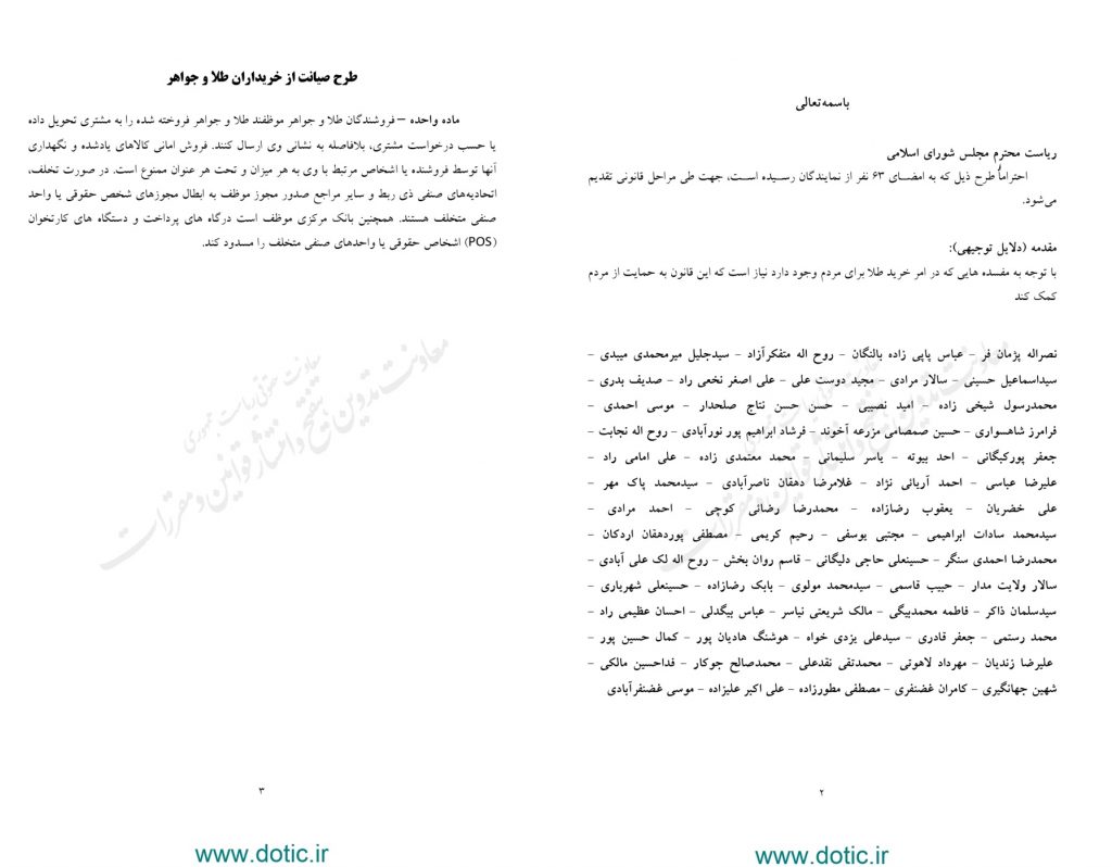 اواسط آذر ماه، ۶۳ نفر از نمایندگان مجلس طرحی با عنوان صیانت از خریداران طلا و جواهر تنظیم و تقدیم مجلس کردند که در صورت تصویب نهایی، مدل کسبوکار بسیاری از پلتفرمهای فروش آنلاین را با چالشی جدی مواجه میکند. بر اساس تنها ماده این طرح، فروشندگان طلا و جواهر موظف هستند کالای فروخته شده را بلافاصله به مشتری تحویل دهند. در این طرح صراحتا قید شده است که فروش امانی کالاهای یادشده و نگهداری آنها توسط فروشنده یا اشخاص مرتبط، به هر میزان و تحت هر عنوان ممنوع است؛ تبصرهای که عملا به معنای خاموشی چراغ پلتفرمهای سرمایهگذاری آنلاین طلا و پایان مدل خرید و نگهداری در فضای مجازی خواهد بود.